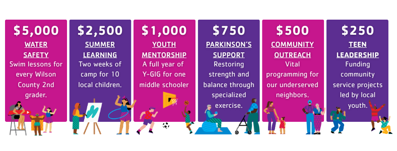 When you give to the Y, you support critical programs and services for young people, seniors, and families who need them the most. We’re open to all and create spaces where everyone can be, belong and become. We’re here to encourage each person on their path to reach their full potential. Here are some ways your donation can make a difference in the Wilson Community.